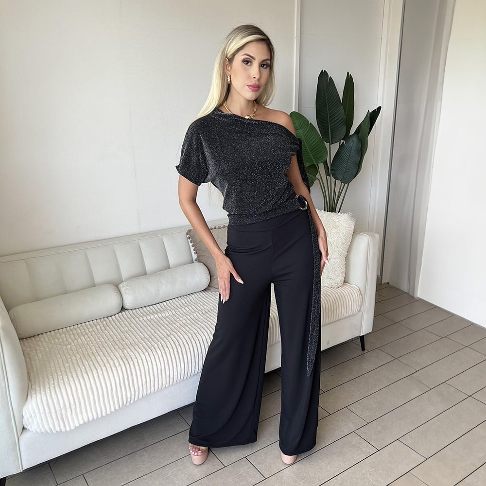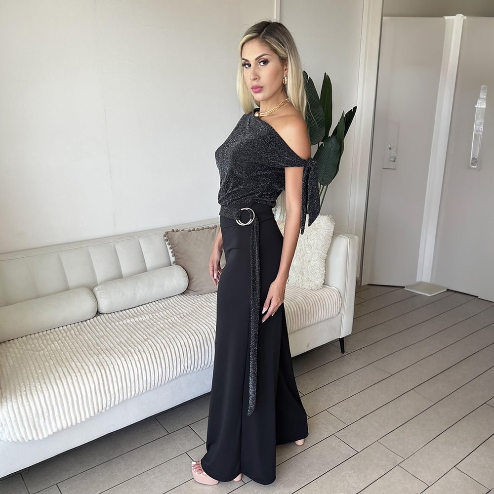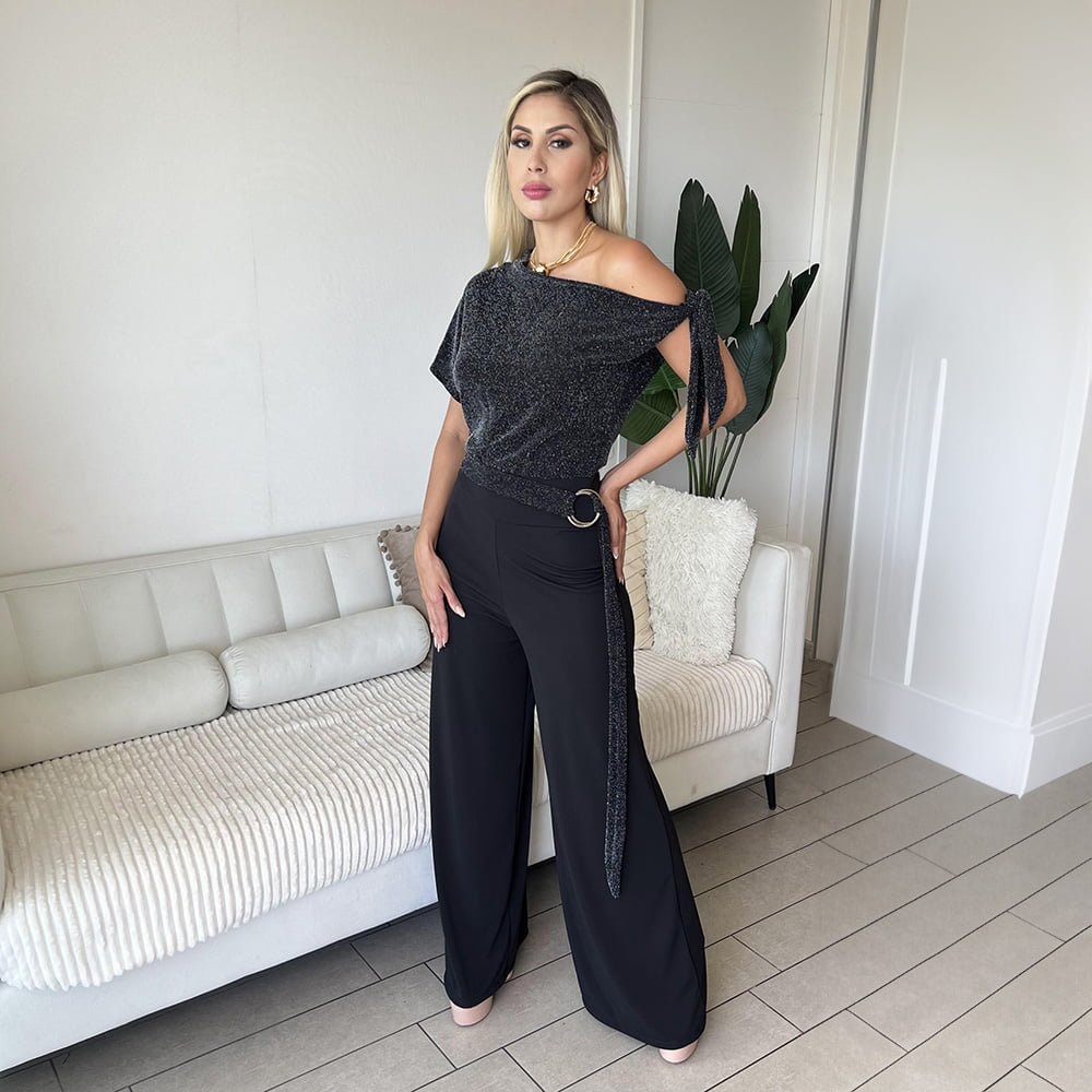 - Detalles: Negro Brillos Plateados