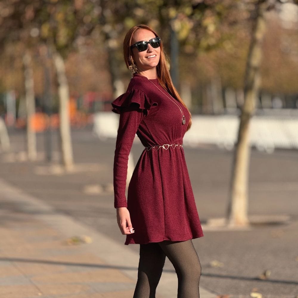 - Detalles: color burdeo